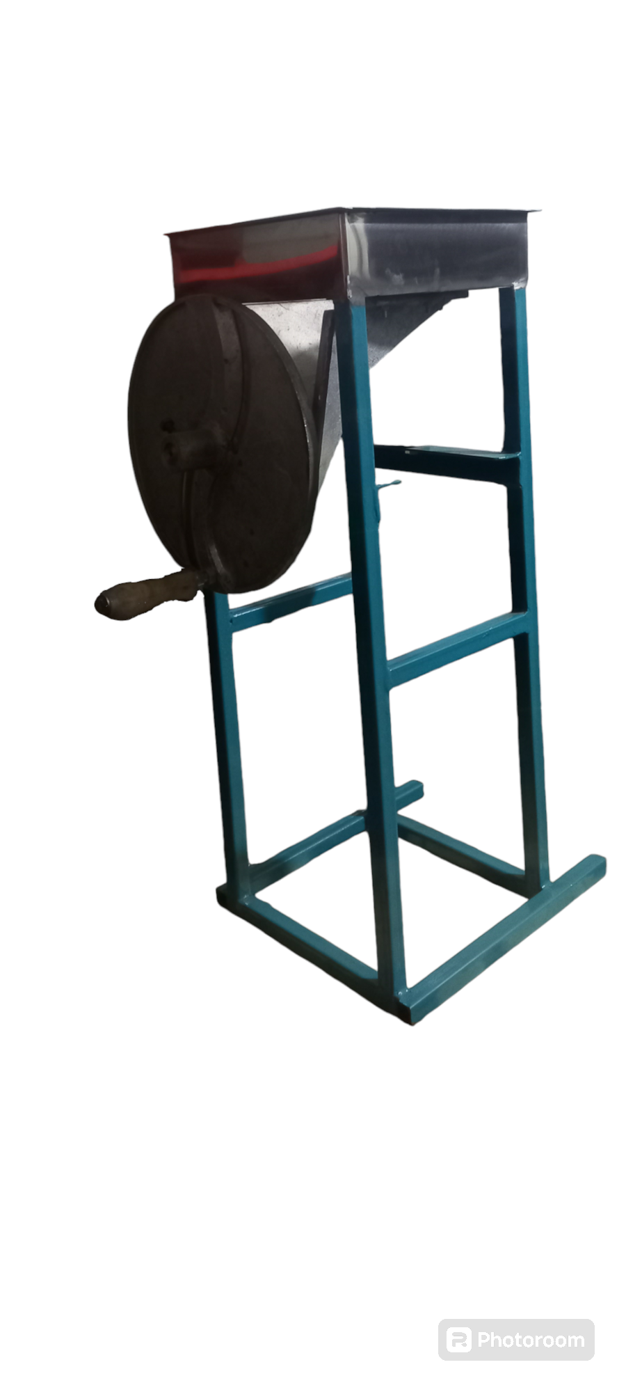 Hand-operated chipper for slicing cassava.