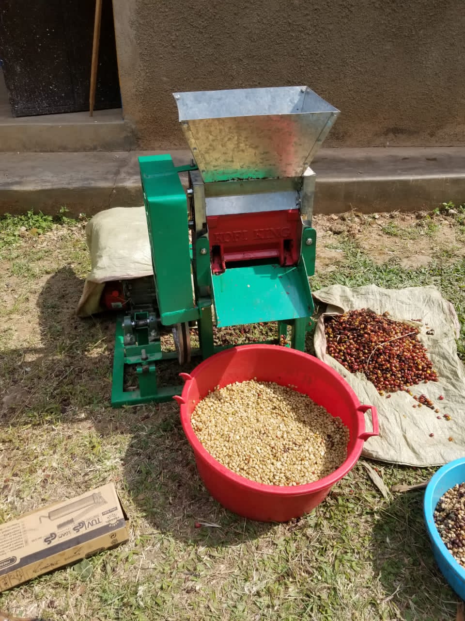 Machine for removing pulp from coffee cherries.