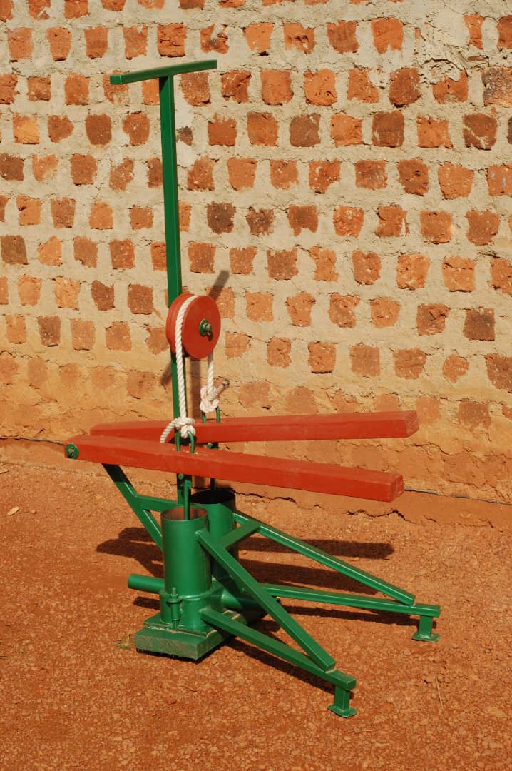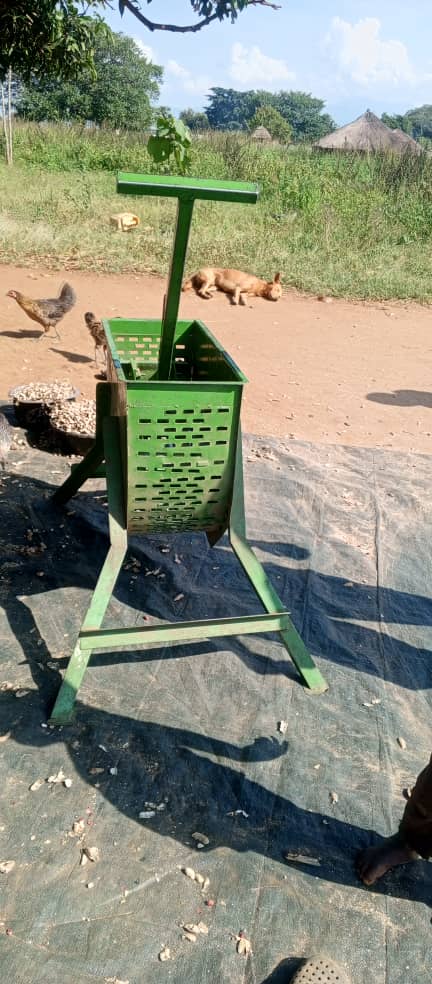 Manual sheller for removing shells from ground nuts.
