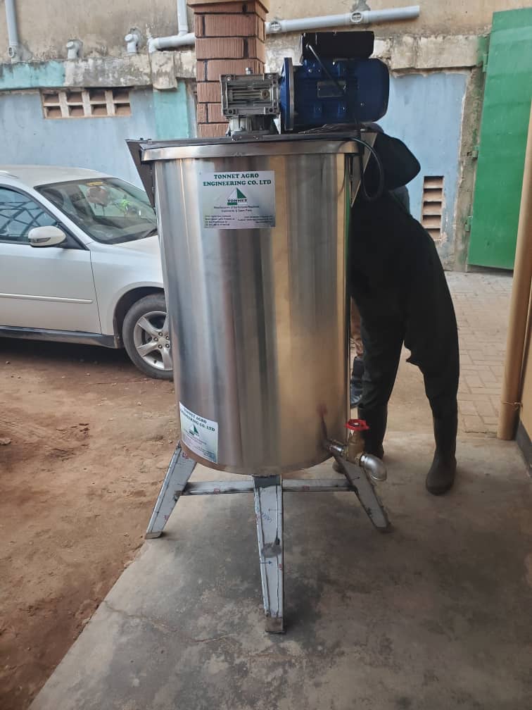 Compact vertical mixer for small-scale operations.