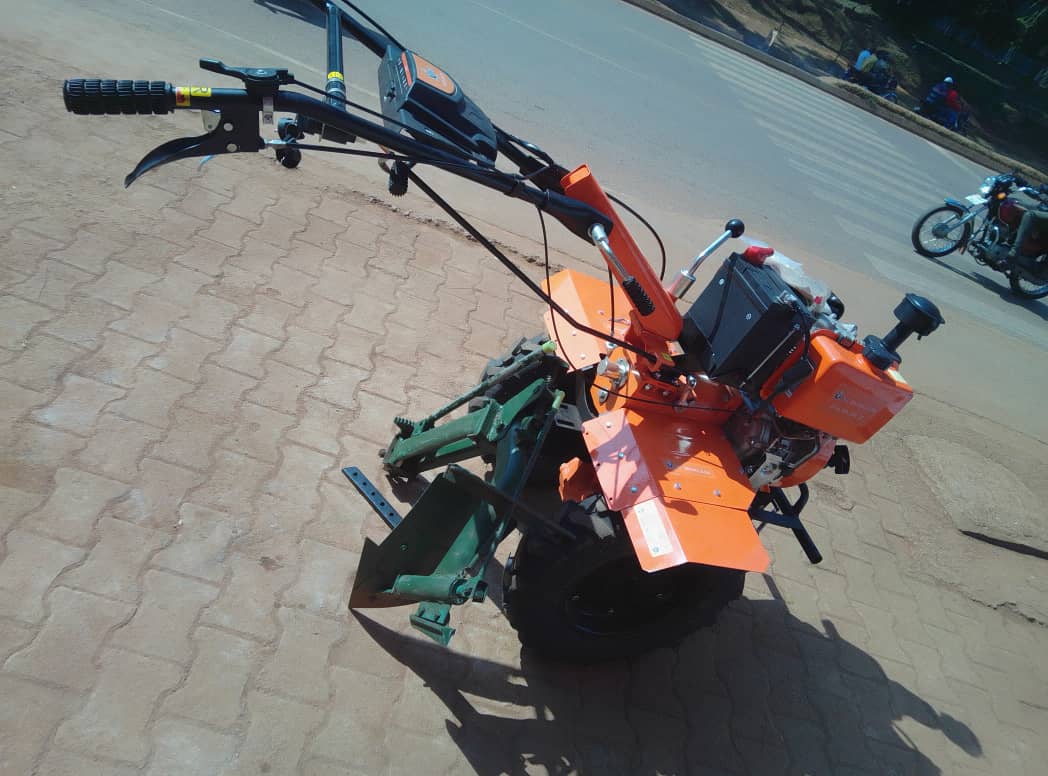 Versatile walk-behind tractor for various agricultural tasks.